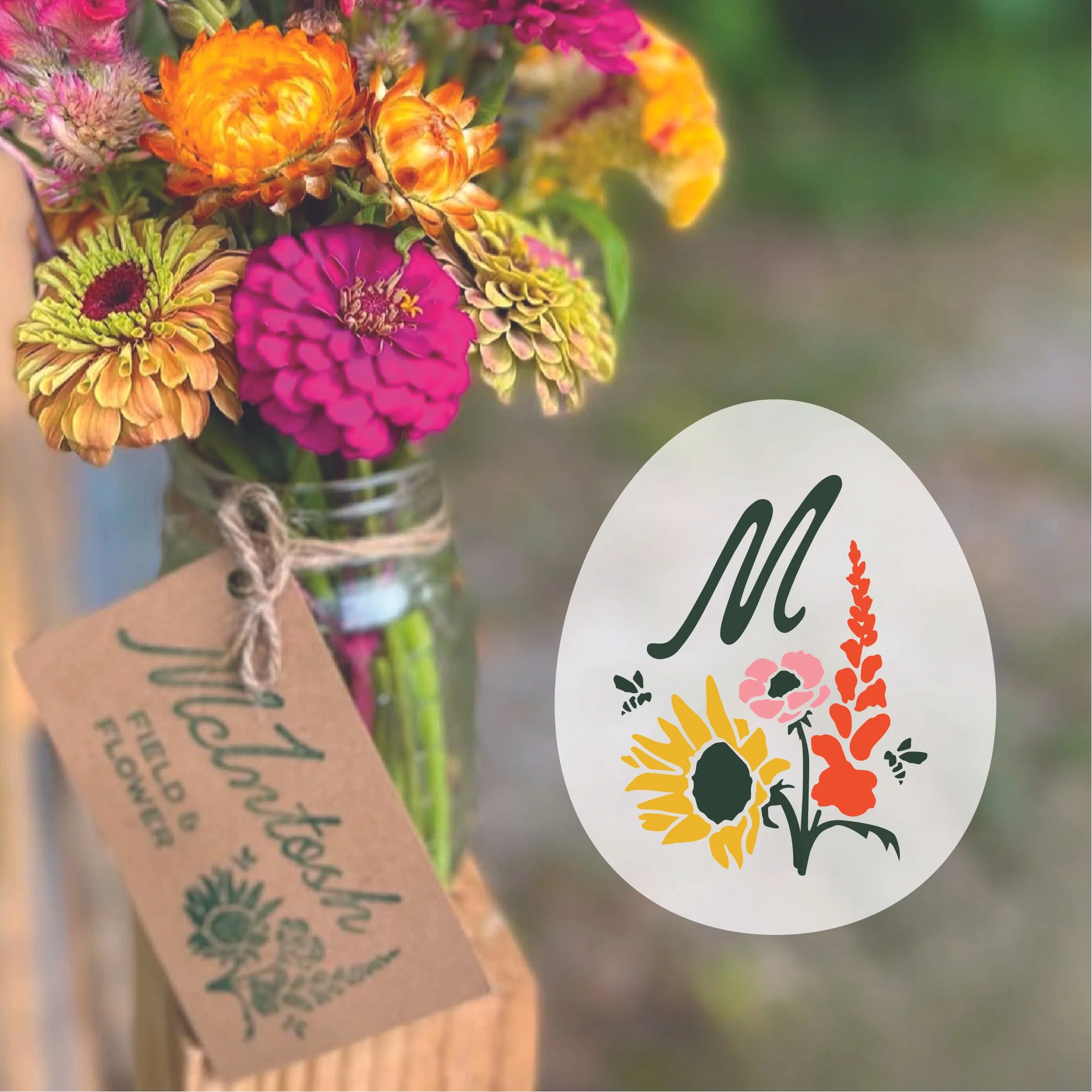 A quick logo design for a flower business! They want to expand into selling eggs and honey as well, hence the tagline field and flower.